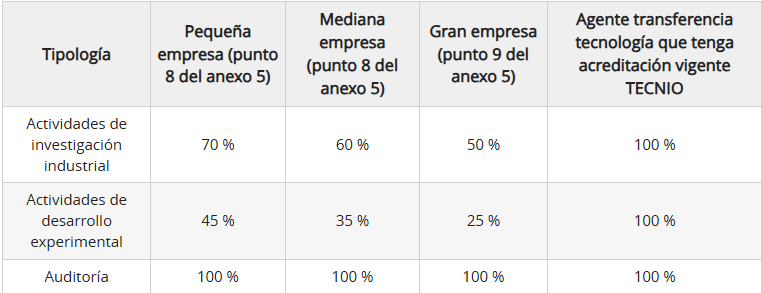 La intensidad dependerá del tipo de proyecto y las características de la empresa, conforme a lo estipulado en el régimen de minimis (Reglamento UE 2023/2831).